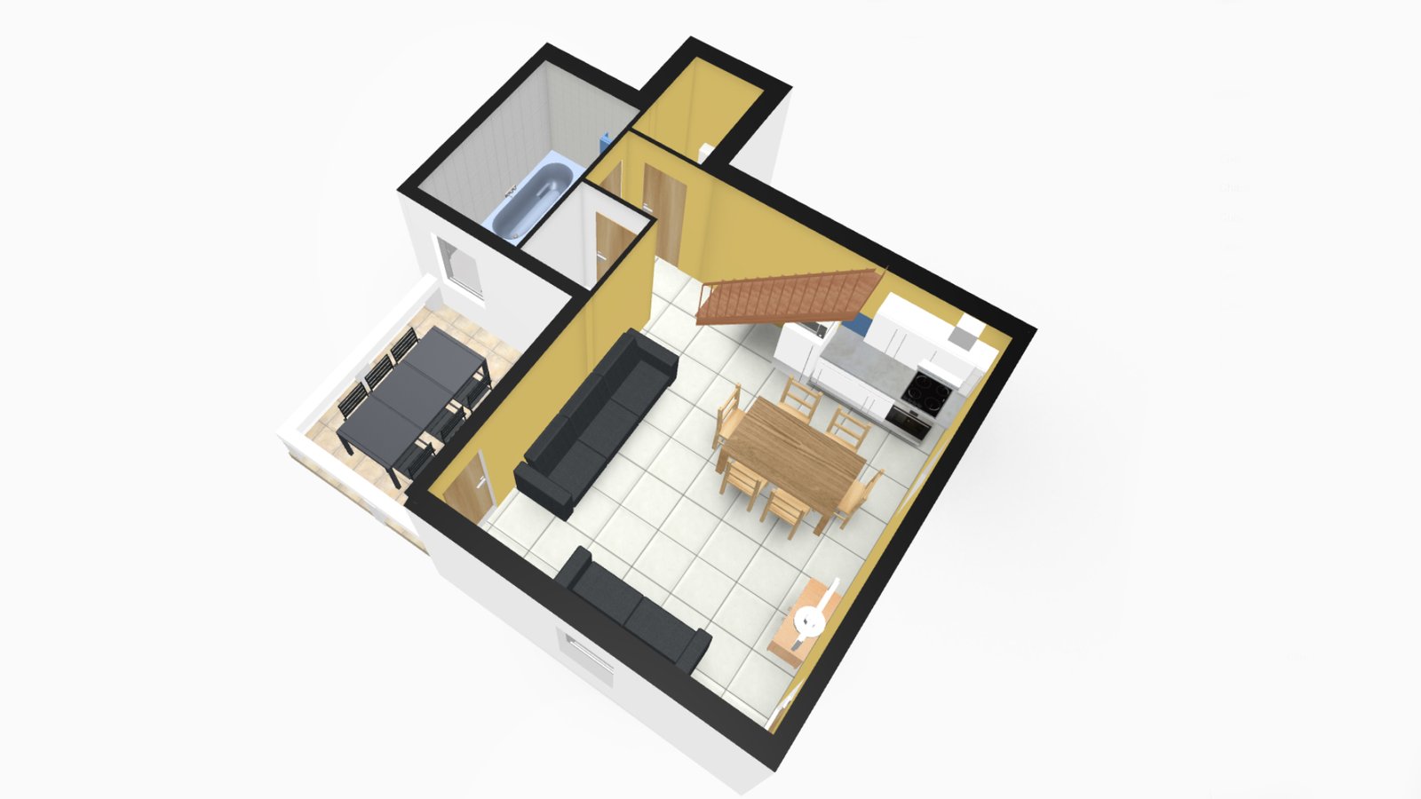 Profitez de sa terrasse privative donnant sur le jardin, l’aire de jeux et la piscine, idéale pour partager des moments en toute tranquillité.