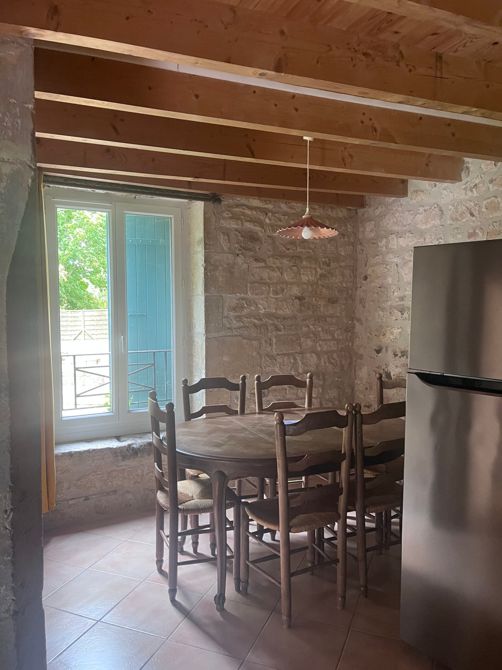 Sa particularité ? La présence d’une trieuse à grains, vestige de son activité d’autrefois, désormais conservée comme pièce maîtresse de la cuisine.